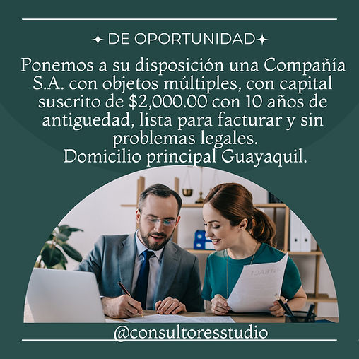 De Oportunidad, Están en venta las siguientes compañías con más de 5 años de antigüedad, domiciliadas en Guayaquil.